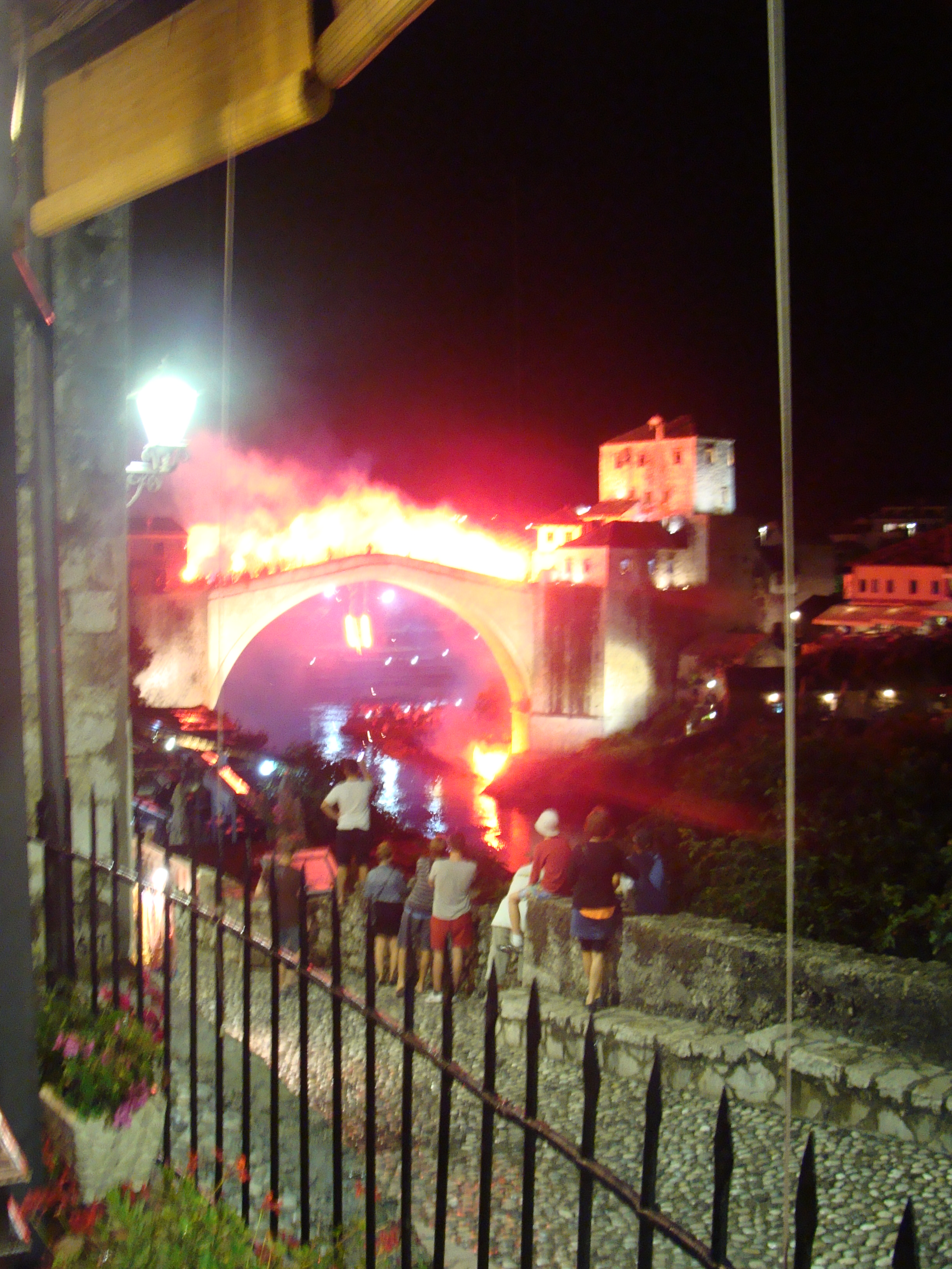 Köprü iç savaş sırasında 1993 yılında Sırplar tarafından yıkılmış ve 2004 yılında restore edilene kadar kullanılamaz durumdaymış. Köprü’nün hemen yanındaki kitap evlerinde köprünün yıkılışı ve iç savaşa dair bir çok yerel kitap bulunuyor..