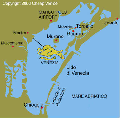 İtalya’nın kuzeydoğusunda yer alan şehir ms. 811 yılında işgalci Barbar kavimlerden kaçan yerel halkın anakaradan kaçarak denizin içinde kalan lagünlere sığınmasıyla kurulmuştur. 118 adacık üzerine kurulu şehirde 400 civarında köprü yerleşimleri birbirine bağlamak ile beraber sadece deniz yoluyla ulaşılabilen yerleşim yerleri de bulunmaktadır. Venedik’i benzersiz yapan Adriyatik’te yer alan girintiyi (laguna veneta) güvenli bir doğal liman haline getiren limanın ağzında yer alan ince uzun adalarıdır. Venedik’in ana yerleşimi ve turistik bölgesi ortada yer alan sarı bölgedir ve karaya ponte di liberta (özgürlük köprüsü) ile bağlıdır. Köprü anakaraya karayolu ve demiryolu ile ulaşımı sağlamaktadır.